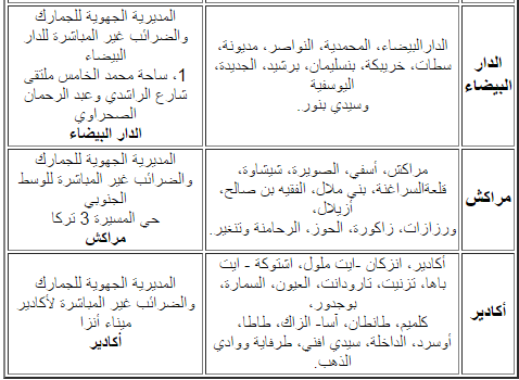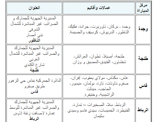 ترسل طلبات الترشيح وجوبا عن طريق البريد، حسب محل إقامة المترشح، إلى إحدى المديريات الجهوية التابعة لإدارة الجمارك والضرائب غير المباشرة المبينة عناوينها أسفله، ويعتبر يوم 06 دجنبر 2013 كآخر أجل لقبولها ( يعتد بتاريخ تأشيرة ختم مصالح البريد)؛