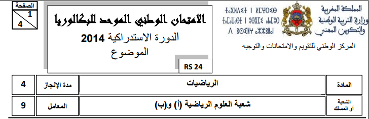امتحانات وطنية للثانية باكشعبة العلوم الرياضية أشعبة العلوم الرياضية ب