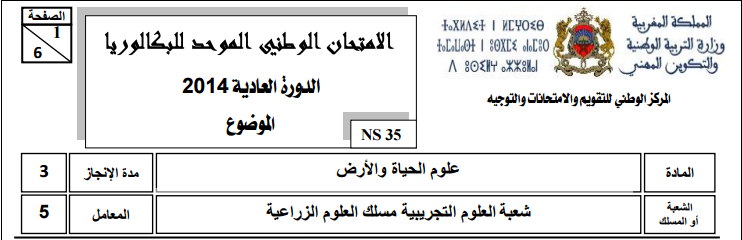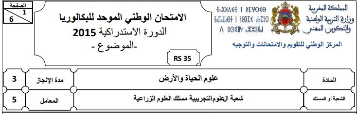 شعبة العلوم الزراعية :الإمتحان الوطني 2015 مادة علوم الحياة و الأرض مع التصحيح الدورة الإستدراكية