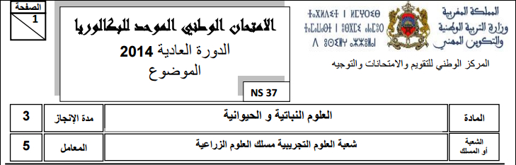 امتحانات وطنية للثانية باكشعبة العلوم الزراعية