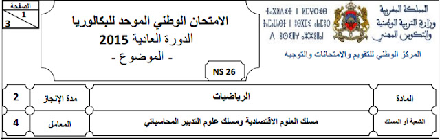 شعبة علوم التدبير المحاسباتي : الإمتحان الوطني نموذج 2015 مادة الاقتصاد و التنظيم الإداري للمقاولات مع التصحيح الدورة العادية .