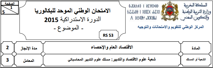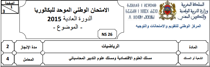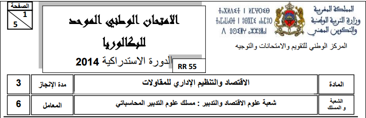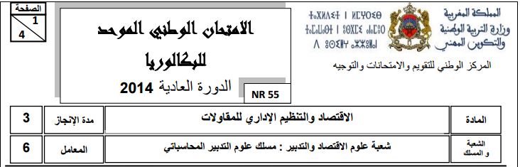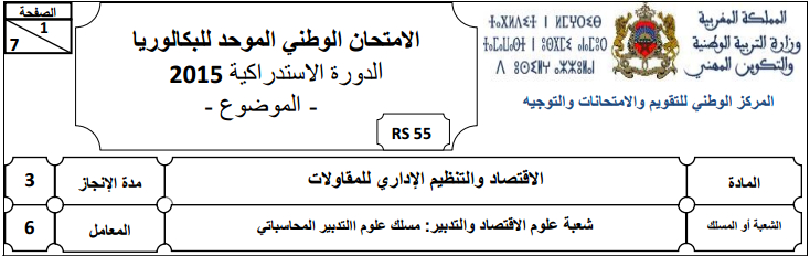 شعبة علوم التدبير المحاسباتي : الإمتحان الوطني نموذج 2015 مادة الاقتصاد و التنظيم الإداري للمقاولات مع التصحيح الدورة العادية .