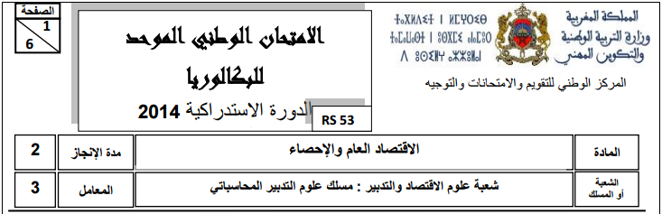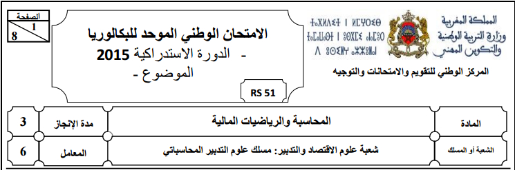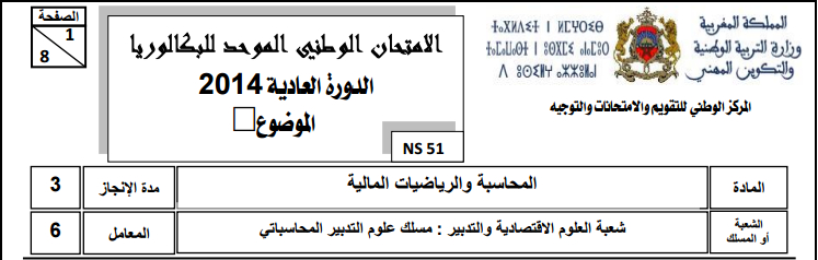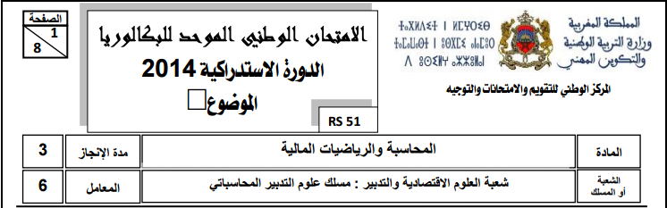 امتحانات وطنية للثانية باكشعبة علوم التدبير المحاسباتي