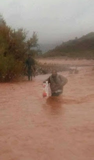 صادم..صور أستاذ يقاوم الفيضانات ويتحدى الظروف الصعبة للوصول إلى مؤسسة تعليمية بخنيفرة تشعل الفايسبوك