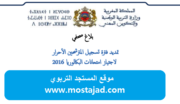 عاجل.. تمديد فترة تسجيل المترشحين الأحرار لاجتياز امتحانات البكالوريا دورة 2016