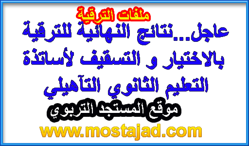 عاجل…نتائج النهائية للترقية بالاختيار و التسقيف لأساتذة التعليم الثانوي التآهيلي