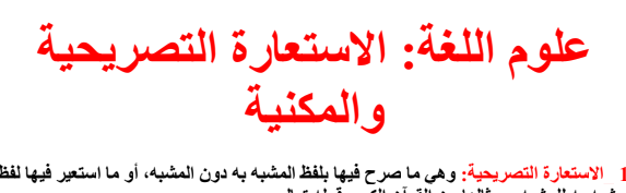 دروس مادة اللغة العربية أولى باكالوريا شعبة اداب وعلوم انسانيةعلوم اللغة : الاستعارة التصريحية والمكنية Pour Télécharger لتحميل الملف