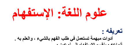دروس مادة اللغة العربية أولى باكالوريا شعبة اداب وعلوم انسانية علوم اللغة : الاستفهام  Pour Télécharger                                  لتحميل الملف