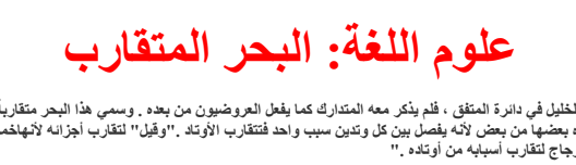 دروس مادة اللغة العربية أولى باكالوريا شعبة اداب وعلوم انسانية علوم اللغة : البحر المتقارب Pour Télécharger لتحميل الملف