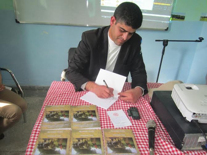” كان سمير يعبث بالماء في نافورة الحي كل مساء٬ وفي يوم من الأيام وهو يزاول هوايته المفضلة٬ فاجأه قط ضخم الجثة كبير المخالب٬ أنيابه كأنياب الأسد عيناه حمروان٬ فكلمه كالآدمي موبخا إياه”.