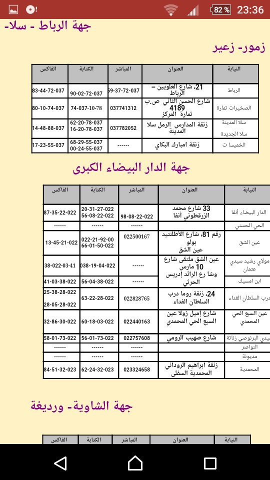 رقم هاتف نيابة التعليم جهة الدار البيضاء الكبرى