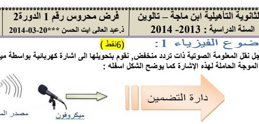 فرض محروس رقم 1 في مادة الفيزياء والكمياء مستوى السنة أولى باكالوريا الدورة الثانية