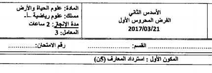 تجميعية فروض مادة علوم الحياة والأرض السنة الثانية باكالوريا علوم الرياضية فرض محروس رقم 1 في مادة علوم الحياة والأرض مستوى السنة الثانية باكالوريا الدورة الثانية Pour Télécharger لتحميل الملف
