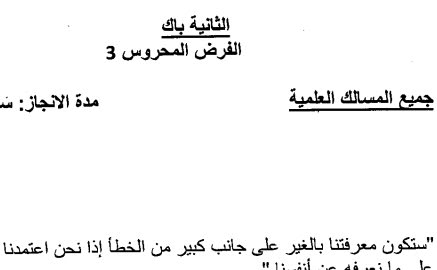 فرض محروس رقم 3 في مادة الفلسفة مستوى السنة الثانية باكالوريا الدورة الأولى