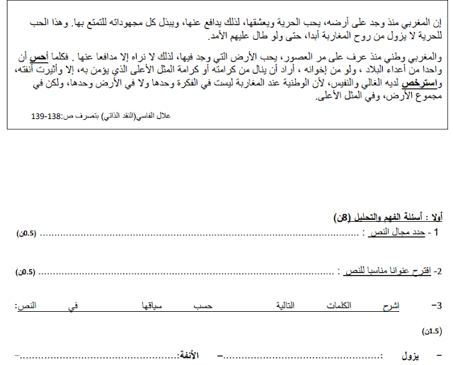 فروض الدورة الأولى (النموذج 4) مادة اللغة العربية الأولى إعدادي