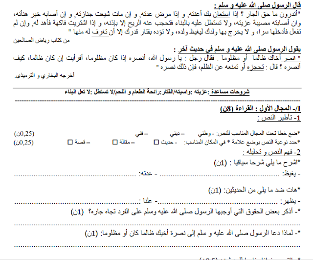 فروض الدورة الأولى (النموذج 5) مادة اللغة العربية الأولى إعدادي