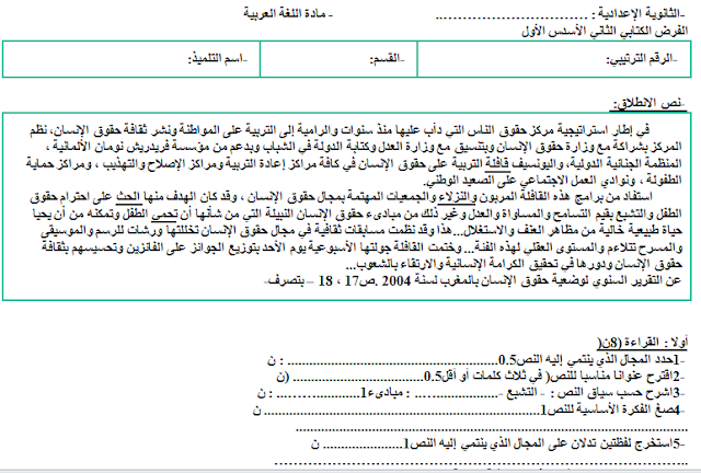 فروض الدورة الأولى (النموذج 7) مادة اللغة العربية الثانية إعدادي قابلة للتعديل بصيغة WORD