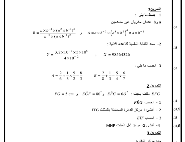 تحميل نماذج فروض الدورة الأولى الرياضيات الثانية إعدادي