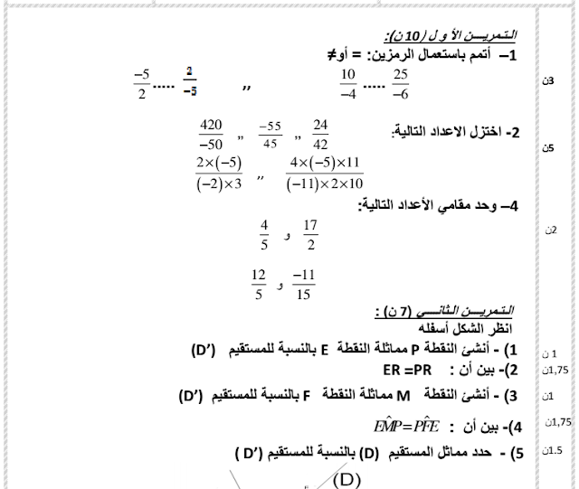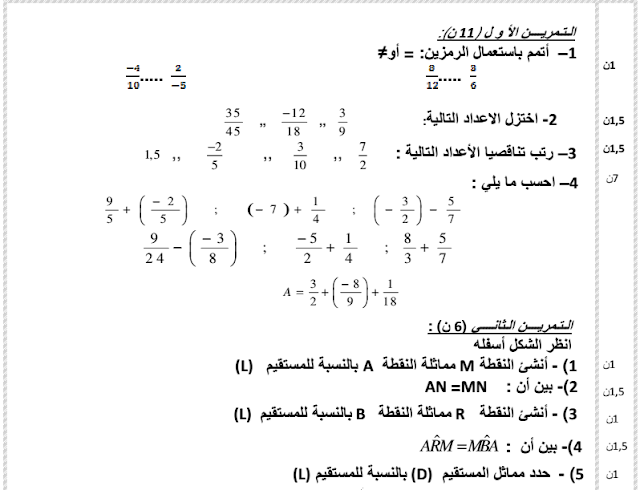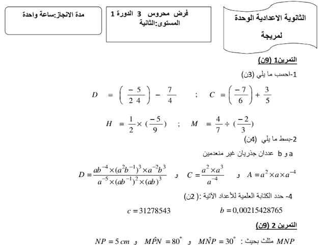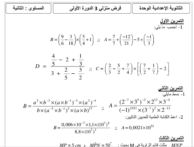 فروض الرياضيات الثانية إعدادي