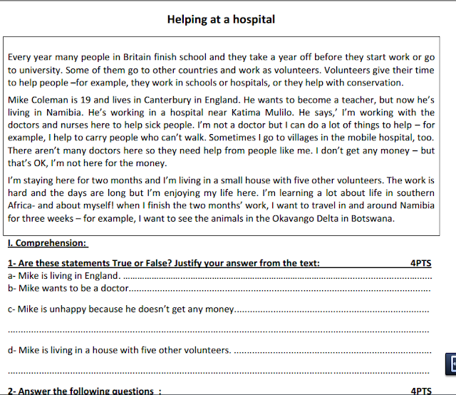 اللغة الإنجليزية 2فروض 2فروض الإعدادي
