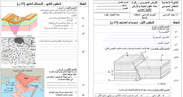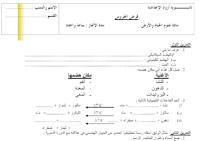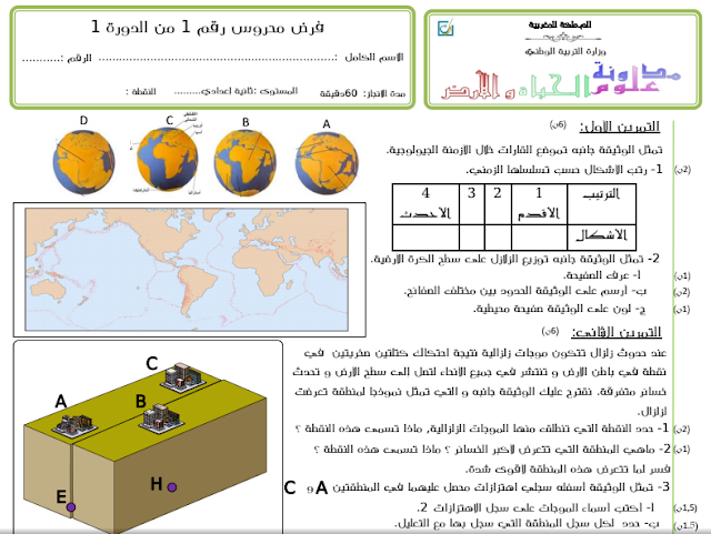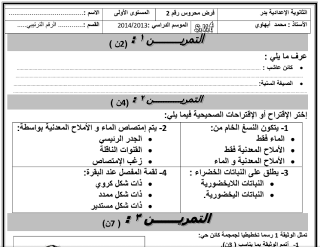 فروض 1فروض الإعداديفروض علوم الحياة و الأرض للأولى إعداديمادة علوم الحياة و الأرض 1
