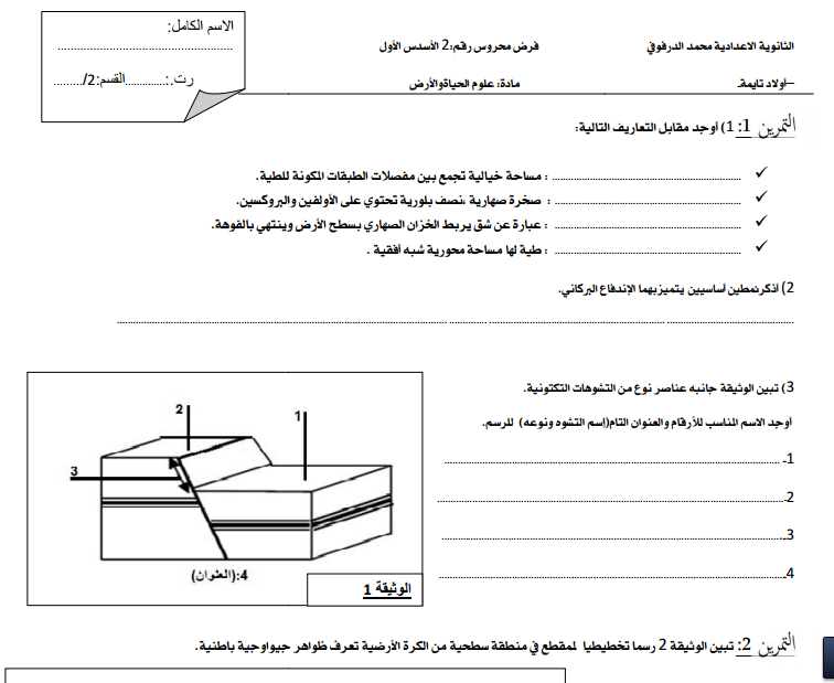 فروض 1فروض الإعداديفروض علوم الحياة و الأرض للأولى إعداديمادة علوم الحياة و الأرض 1