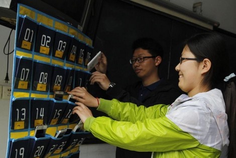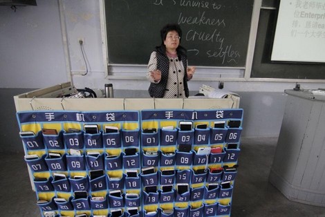 انطلقت مؤخرا بقاعات الدراسة بمعهد تايشان الطبي، بمقاطعة شاندونغ شرقي الصين، محاضرات بدون استعمال الهواتف النقالة؛ وذلك بتخصيص أكياس بأرقام لحفظ هواتف الطلاب أثناء فترة إلقاء الدروس.