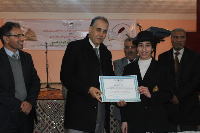 في إطار انشطتها التربوية والثقافية التي تنظمها المديرية الإقليمية بإيفران، ترأس السيد مدير الأكاديمية الجهوية للتربية والتكوين لجهة فاس مكناس فعاليات الدورة الثالثة للملتقى التلاميذي للإبداع الشعري وذلك يوم الخميس 07 أبريل 2016 بالقاعة الكبرى لثانوية طارق بن زياد التأهيلية بمدينة أزرو، تحت شعار “المدرسة المغربية الجديدة أفق للإبداع الشعري”