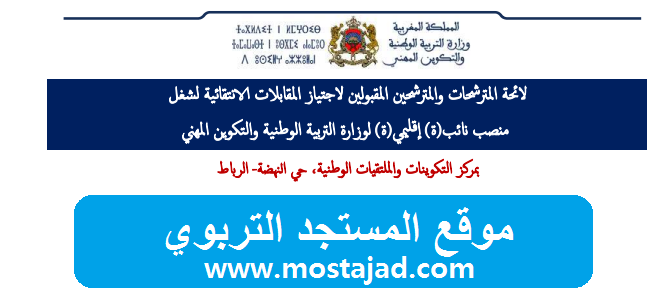 لائحة المترشحات والمترشحين للمقابلات لشغل منصب نائب (ة) إقليمي (ة) لوزارة التربية الوطنية