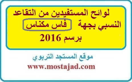 لوائح المستفيدين من التقاعد النسبي بجهة فاس مكناس برسم 2016 حظ موفق للجميع للتحميل المرجو الضغط على الرابط أسفله: هنا