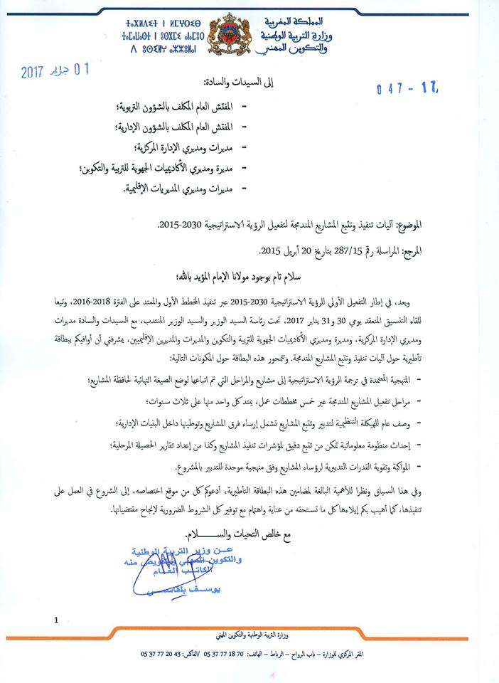 تنفيذ وتتبع المشاريع المندمجة لتفعيل الرؤية الاستراتيجية 2030-2015 من أجل الاستعداد الجيد لامتحان ولوج المركز.