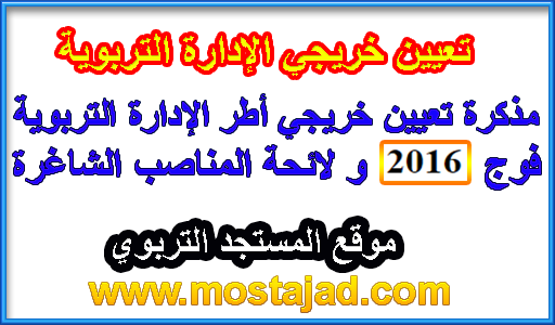 مذكرة 048-16 صادرة بتاريخ 26 مايو 2016 في شأن تعيين خريجي أطر الإدارة التربوية والدعم الإداري والتربوي والاجتماعي... تحميل لائحة المناصب الشاغرة الخاصة بمديري المدارس الابتدائية و الحراسة العامة بمؤسسات التعليم الثانوي لسنة 2016... تحميل