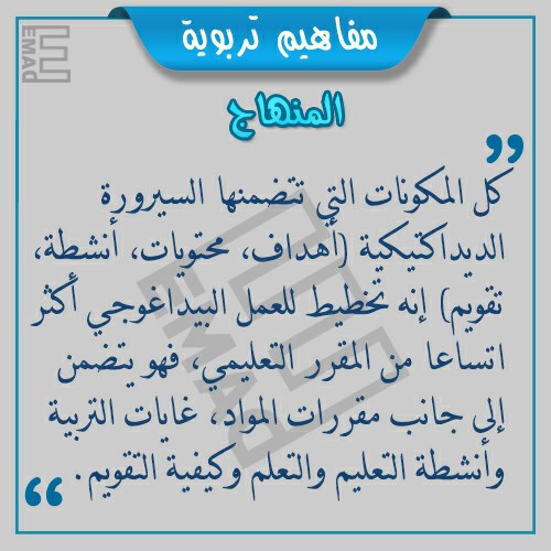 نقدم لكم في هذا الموضوع مفاهيم تربوية : تعريف المنهاج ، بشكل غاية في الروعة، يمكنكم التحميل من الرابط أسفله: