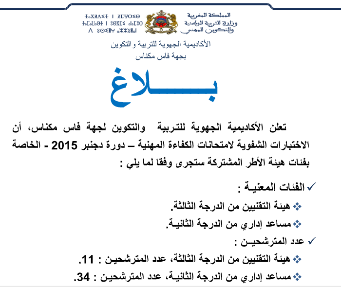 بلاغ إجراء الاختبارات الشفوية لهيئة الأطر المشتركة + لوائح المترشحين للاخبارات الشفوية 2016