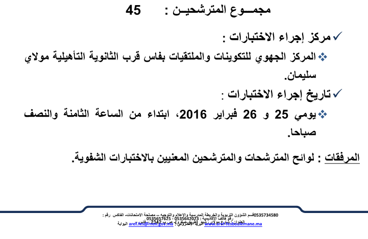 مكان و تاريخ إجراء الاختبارات الشفوية لهيئة الأطر المشتركة + لوائح المترشحين 2016