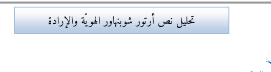 دروس مادة الفلسفة السنة الثانية باكالوريا شعبة آداب وعلوم إنسانية تحليل نص أرتور شوبنهاور الهويّة والإرادة Pour Télécharger لتحميل الملف