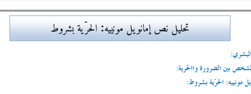 دروس مادة الفلسفة السنة الثانية باكالوريا شعبة آداب وعلوم إنسانية تحليل نص إمانويل مونييه: الحرّية بشروط Pour Télécharger لتحميل الملف
