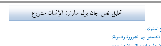 دروس مادة الفلسفة السنة الثانية باكالوريا شعبة آداب وعلوم إنسانية تحليل نص جان بول سارتر: الإنسان مشروع Pour Télécharger لتحميل الملف