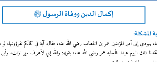 ملخص درس إكمال الدين ووفاة الرسول صلى الله عليه وسلم