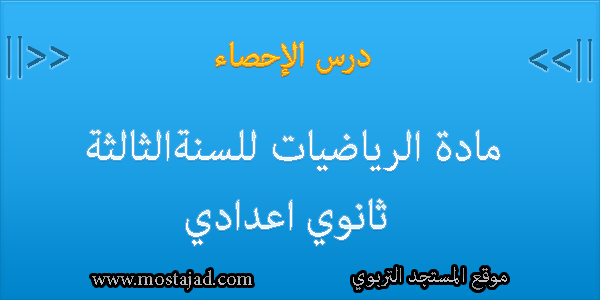 درس في مادة الرياضيات الإحصاء لتلاميذ السنة الثالثة من التعليم الثانوي الإعدادي، ويتضمن درس الإحصاء المحاور التالية:
