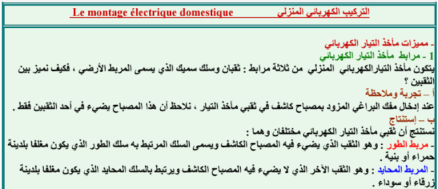 ملخص درس التركيب الكهربائي المنزلي – مادة الفيزياء والكيمياء – الثانية إعدادي