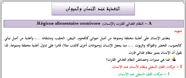 درس في مادة علوم الحياة والأرض التغذية عند الإنسان والحيوان لتلاميذ السنة الأولى من التعليم الثانوي الإعدادي، ويشتمل على المحاور التالية: حركات الفك السفلي ونظام الأسنان عند الانسان. الأنبوب الهضمي عند الإنسان. كيفية الحصول على الأغذية. الفك السفلي ونظام الأسنان. الأنبوب الهضمي. من إعداد: الأستاذ حفيظ العسري. ||>>> الدرس : فيديو توضيحي : رابط تحميل الملخص درس التغذية عند الإنسان والحيوان للأولى إعدادي (مادة علوم الحياة والأرض)