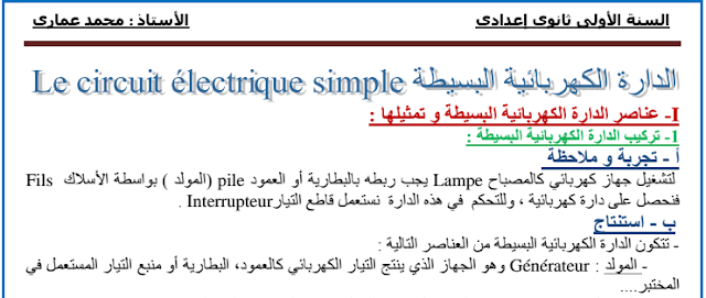 ملخص درس الدارة الكهربائية البسيطة الأولى إعدادي + فيديو توضيحي