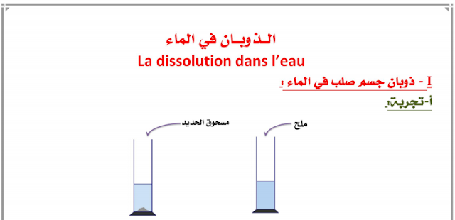 ملخص درس الذوبان في الماء للسنة الأولى إعدادي + فيديو توضيحي