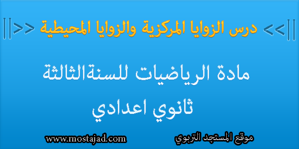 درس في مادة الرياضيات الزوايا المركزية والزوايا المحيطية لتلاميذ السنة الثالثة من التعليم الثانوي الإعدادي، ويتضمن درس الزوايا المركزية والزوايا المحيطية المحاور التالية: