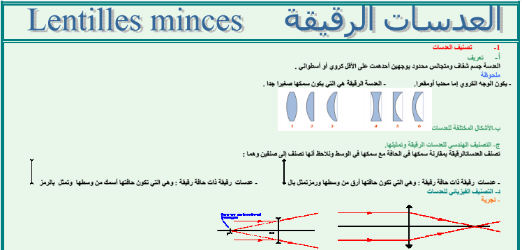 ملخص درس العدسات الرقيقة – مادة الفيزياء والكيمياء – الثانية إعدادي