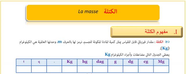 ملخص درس الكتلة للسنة الأولى إعدادي + فيديو توضيحي
