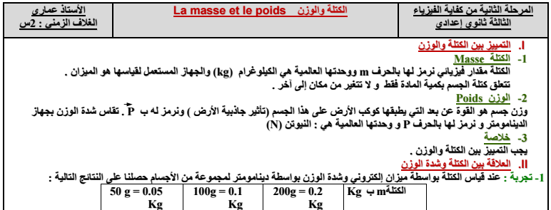 ملخص درس الكتلة والوزن – مادة الفيزياء والكيمياء – الثالثة إعدادي + فيديو توضيحي