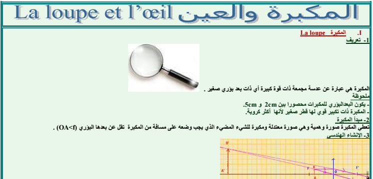 ملخص درس دراسة بعض الأجهزة البصرية (المكبرة والعين) – مادة الفيزياء والكيمياء – الثانية إعدادي