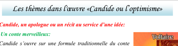 دروس مادة اللغة الفرنسية السنة الثانية باكالوريا شعبة آداب وعلوم إنسانية «Les thèmes dans l’œuvre «Candide ou l’Optimisme Pour Télécharger لتحميل الملف